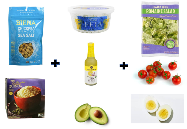 - 1 package of Trader Joe’s Precooked Frozen Quinoa (1/2 cup per person)